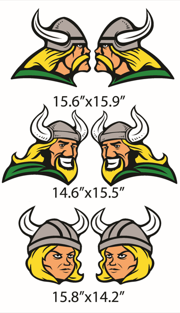 - 6 women vikings measuring 15.8x14.2, 6 one-horned vikings measuring 15.6x15.9 and 6 two-horned vikings 14.6x15.5