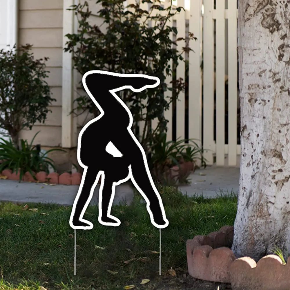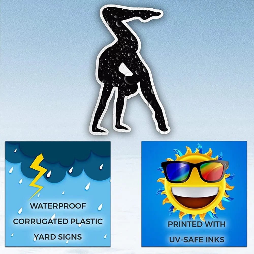 - Elegant: Black gymnastics silhouette on white corrugated plastic with a thin white border