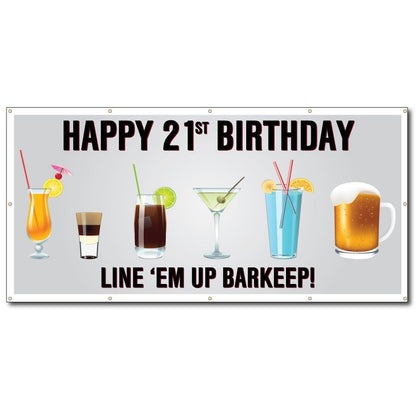- Celebrate in style with this Happy 21st Birthday Banner.