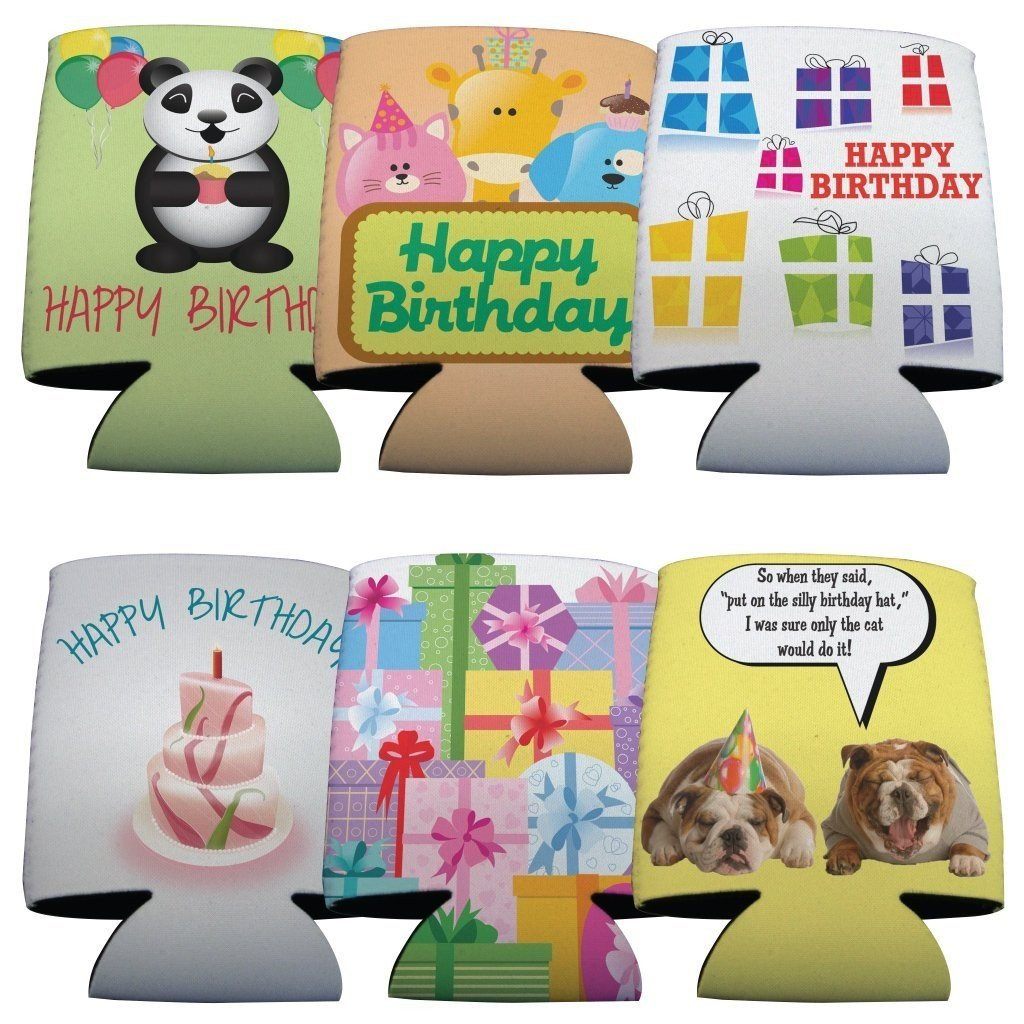 - Happy Birthday can cooler set – Add extra fun to the celebration with this set of six birthday-themed can coolers, perfect for parties, gatherings, and milestone events.