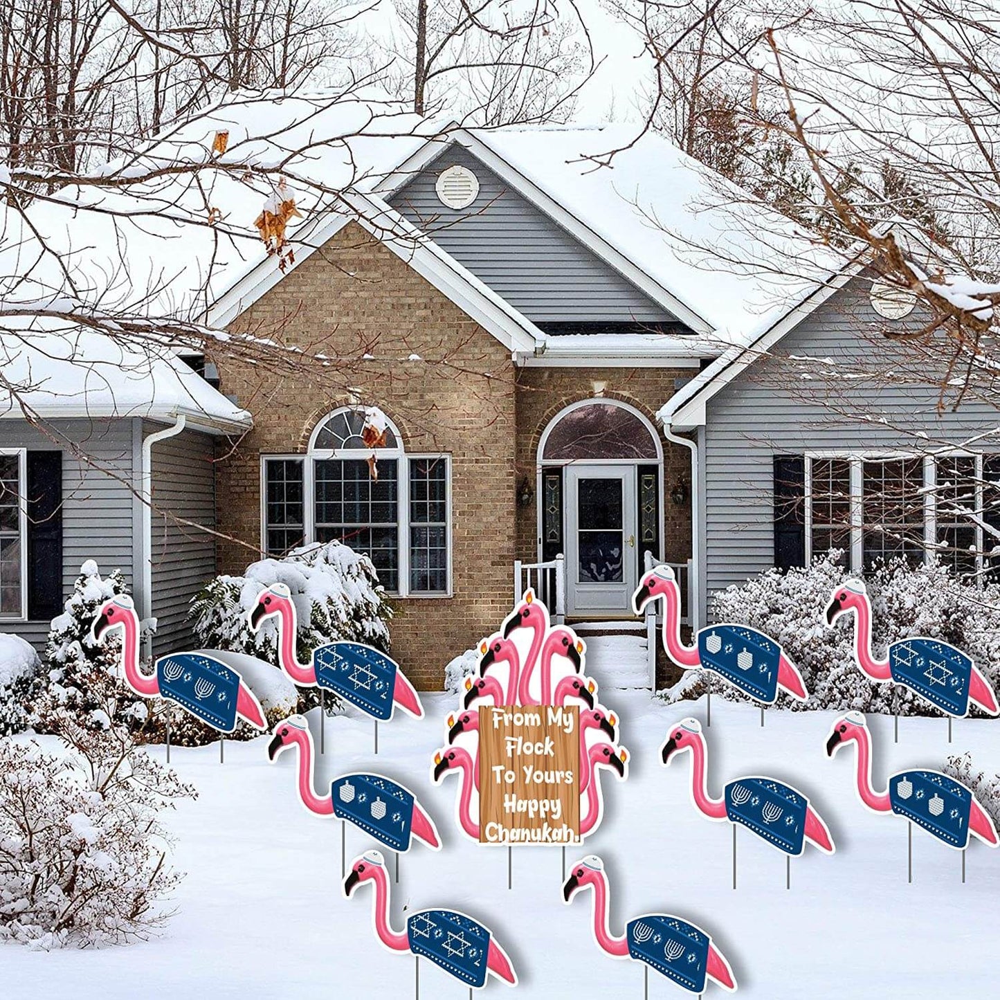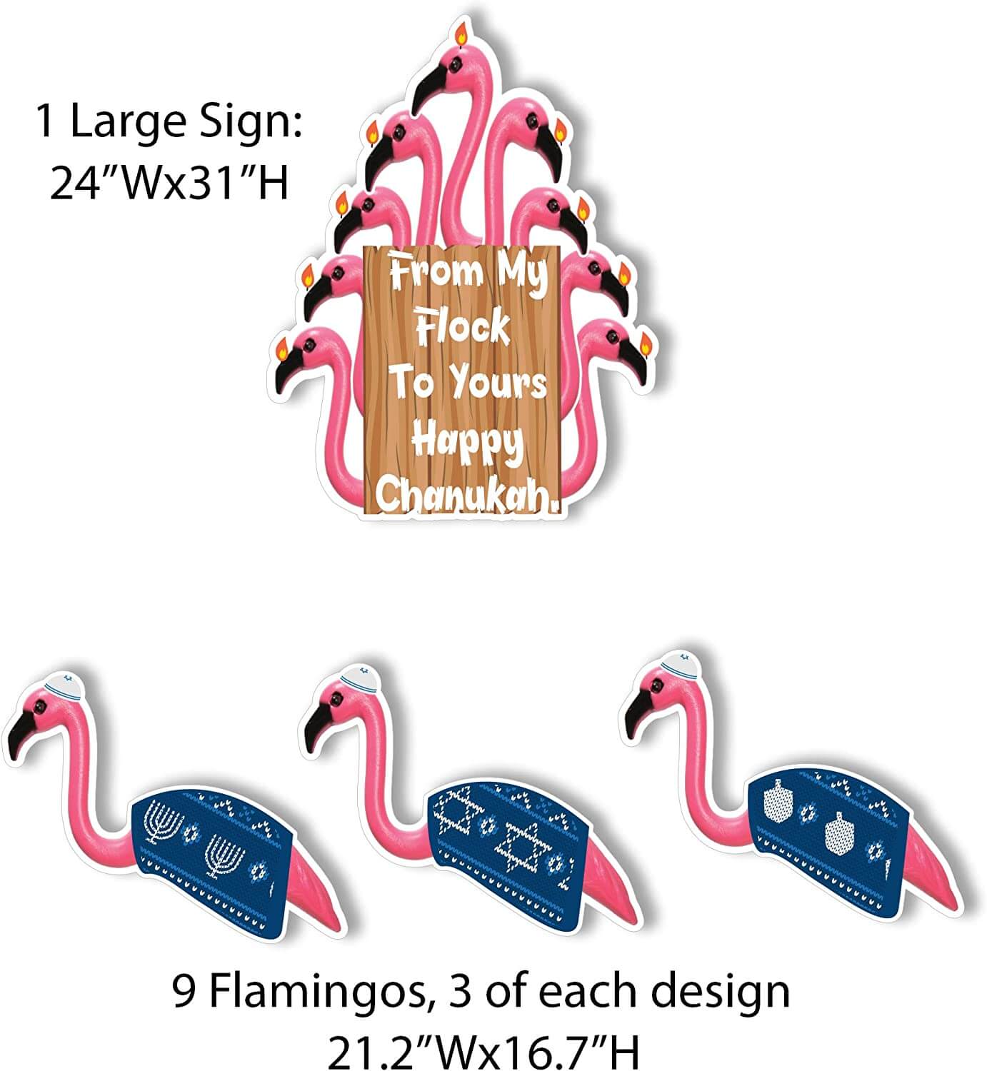 Happy Chanukah Flocking Flamingos 10 pc Yard Card Set