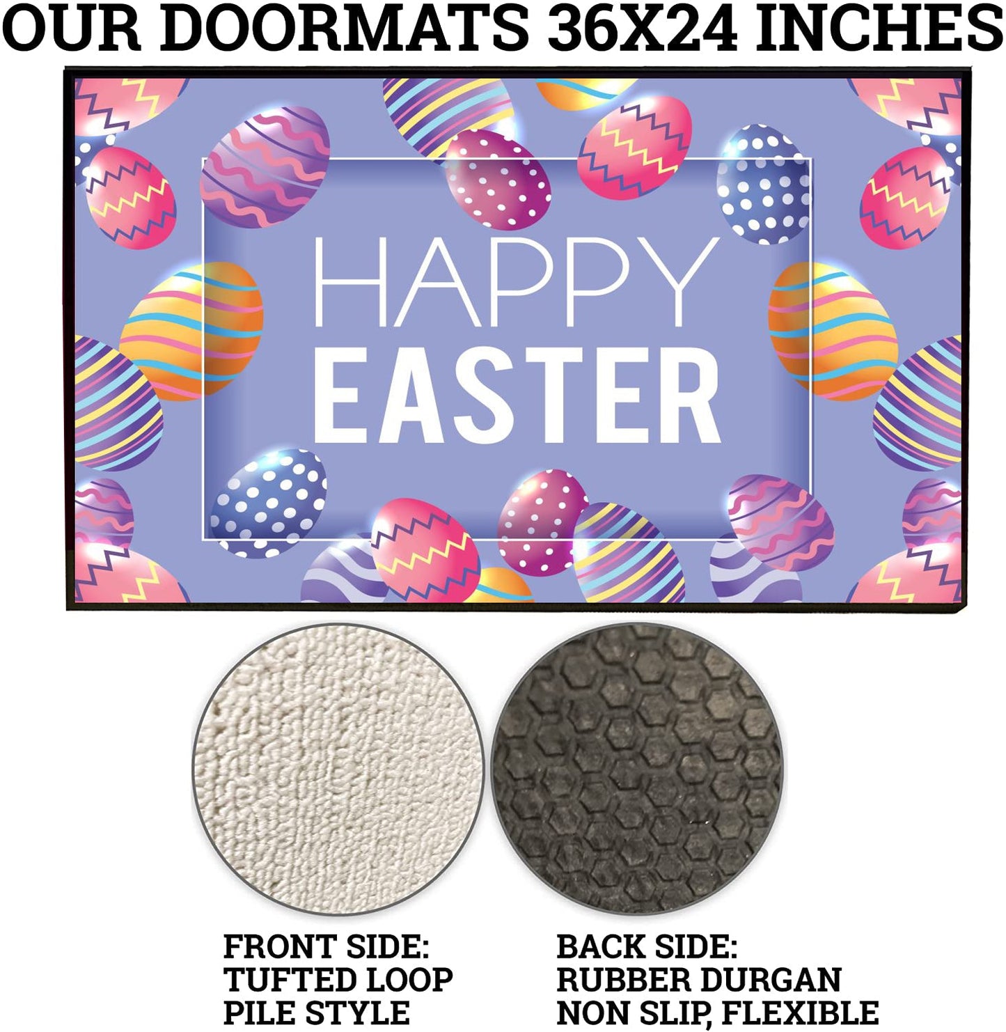 - Quality full color door mats for your home. Multiple designs to choose from to fit your EASTER decor. Tufted Loop, Durgan Backed with Black Edges. Loop is a carpet style having a pile surface consisting of uncut tufted loops.