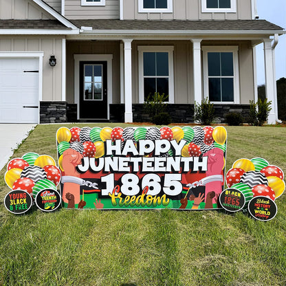 - Various Sized items give your Happy Juneteenth display for the yard depth and dimension.