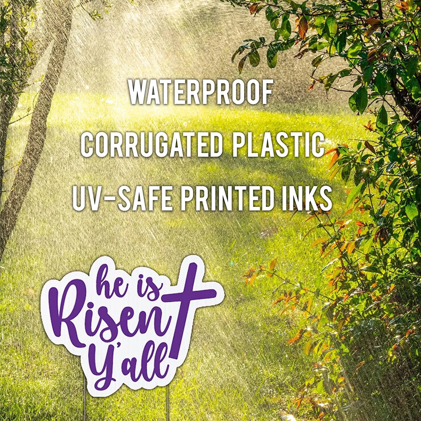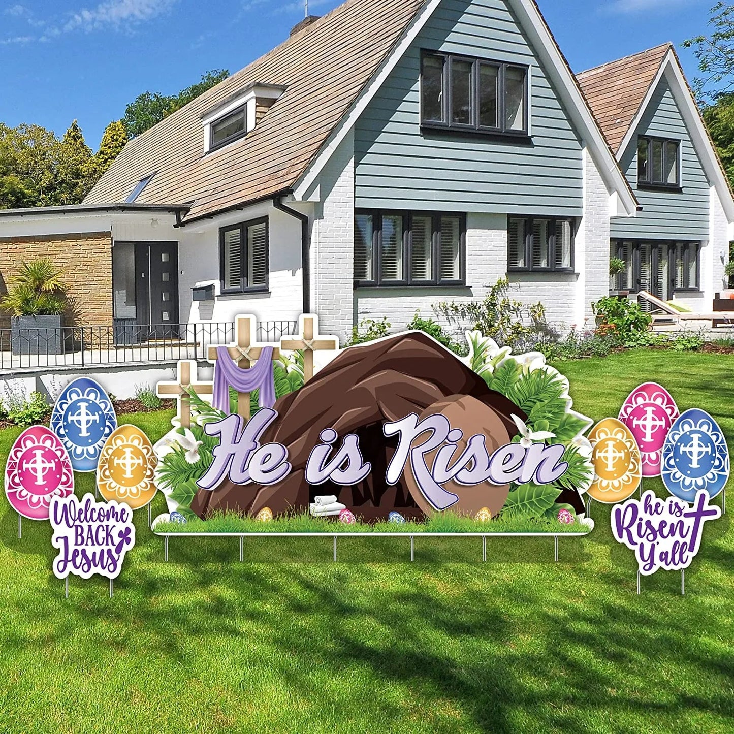 - Boost your Easter decorations with the 9-Piece 'He Is Risen' Easter Yard Sign Set.