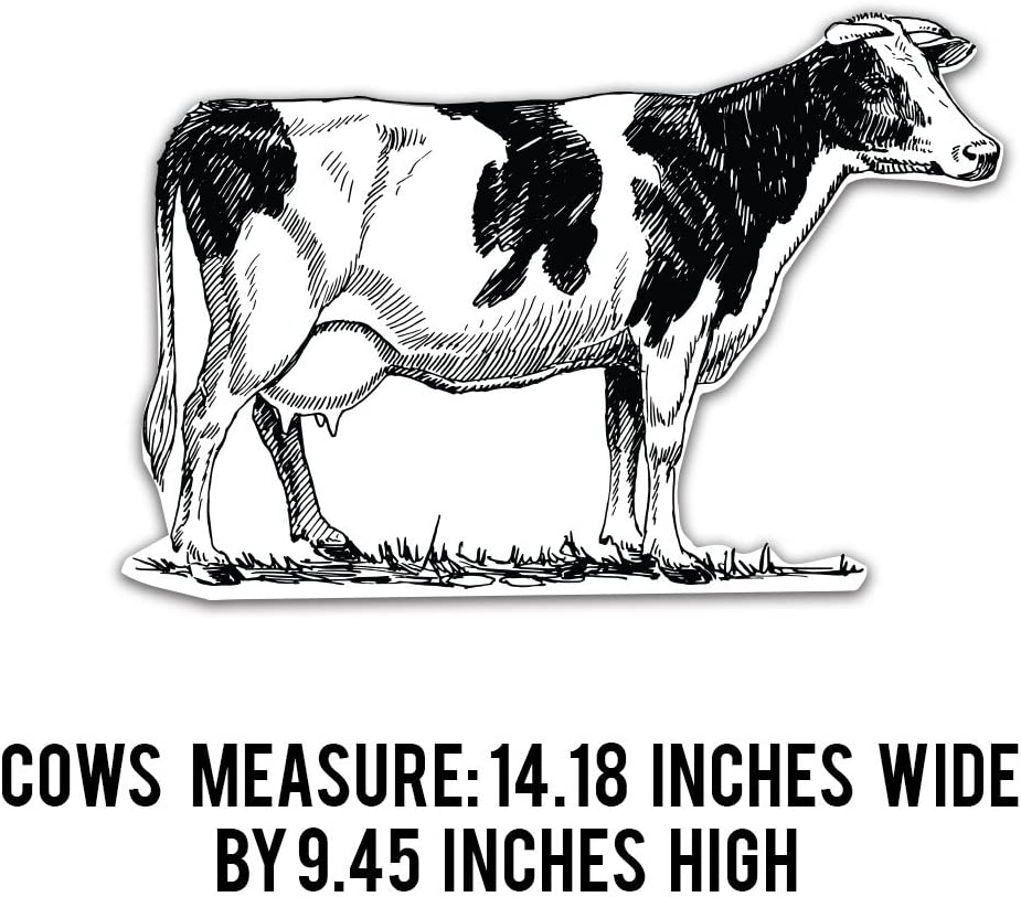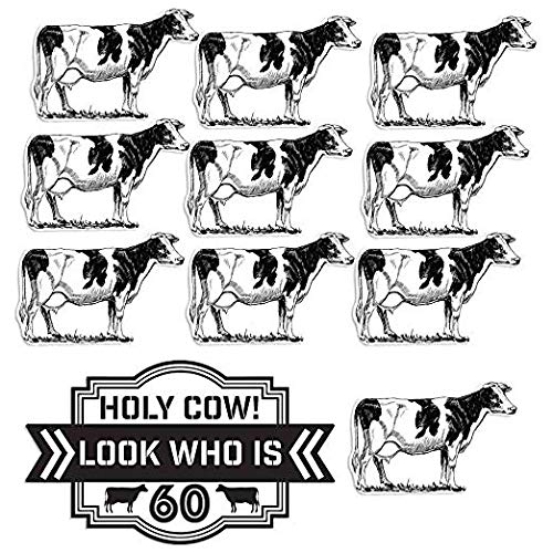 - 11 pieces total, the largest piece is the "Holy Cow! Look who is 60!" and measures: 26"W x 15.4"H, the cows measure: 14"W x 9.5"H.