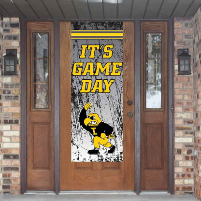 Iowa Game Day Door Banner shows your support on game day. Measures 24" x 120". It is printed on vinyl banner material and is suitable for your front door, inside and out. Full color, digital graphics give your Hawkeye door banner vivid color that you can use and reuse.