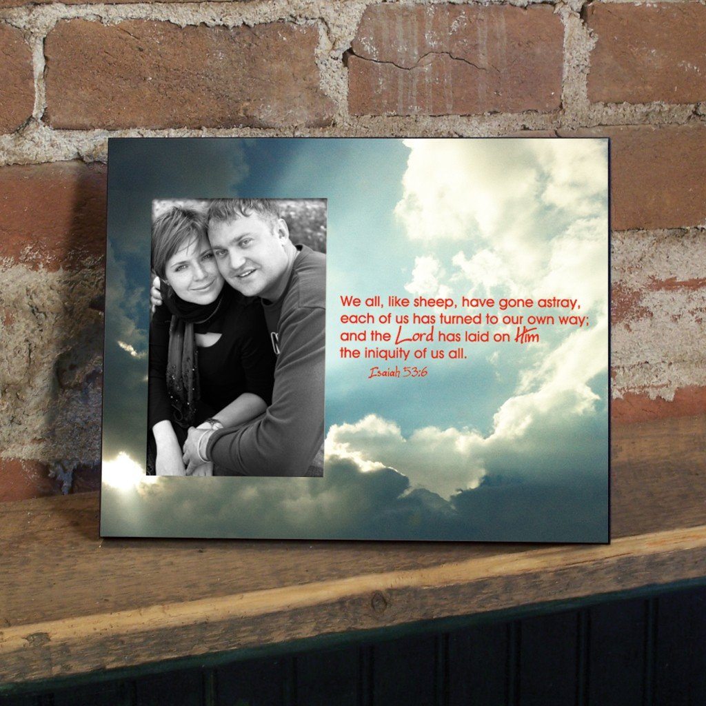 - Our picture frame, measures 8"x 10" overall. Fits a picture with a vertical orientation.