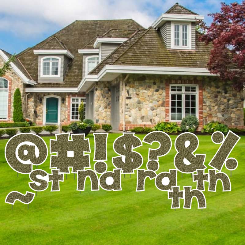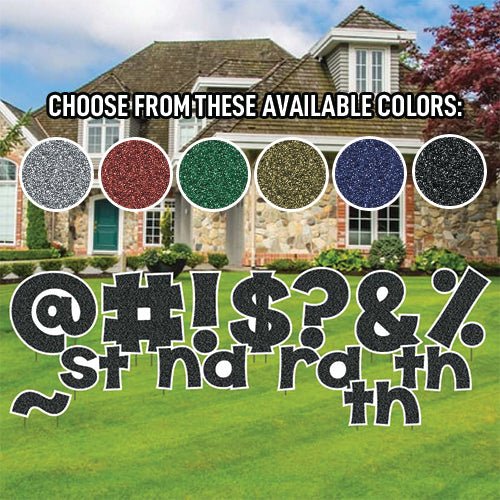Our Special Character Set in faux glitter is the perfect addition to your yard letter inventory