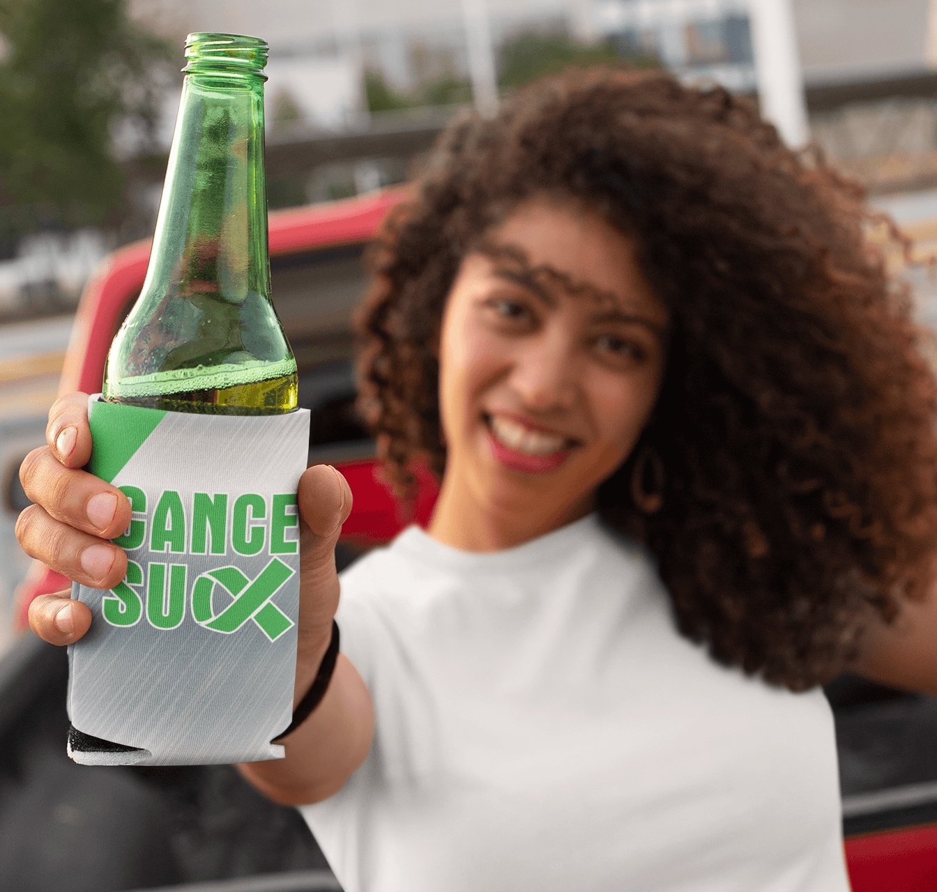 Keep your drink cold with our Kidney Cancer Sucks Can Coolers!
