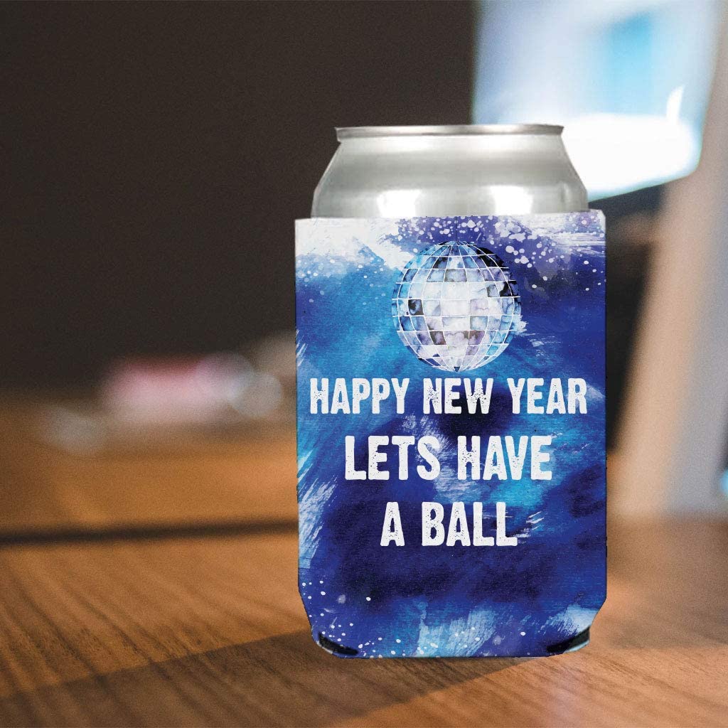 - Set of 6 themed designs – Includes six can coolers featuring unique New Year’s Eve graphics printed in full color, seam to seam. Each cooler is foldable with sewn seams and a slotted bottom for durability.
