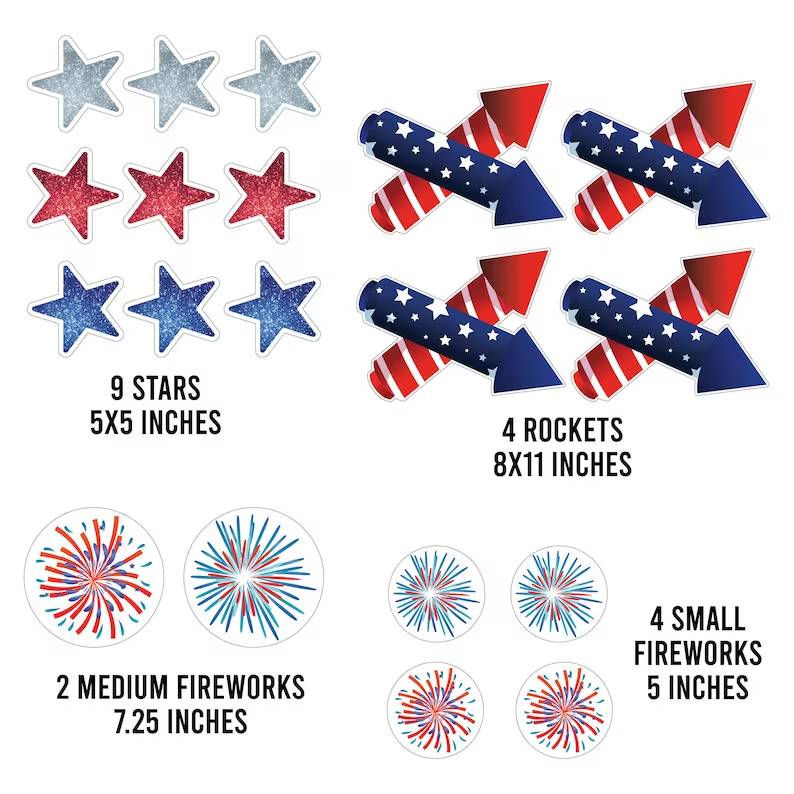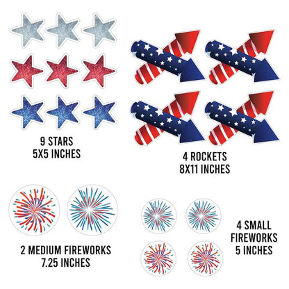 Magnetic Jumbo Patriotic Stars & Fireworks Accessories | 19pc Set