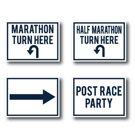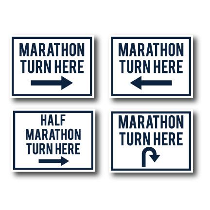 - Half Marathon Turn Here (with arrow pointing to the right)