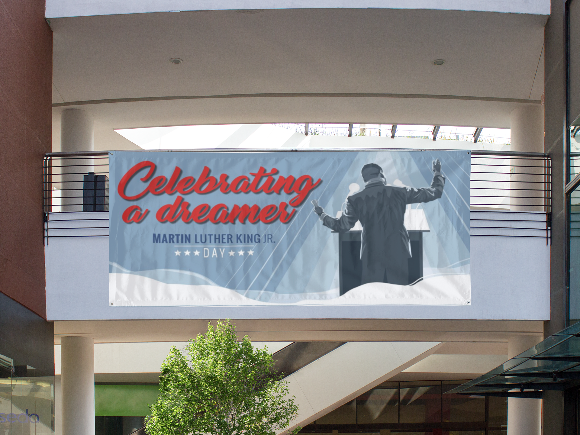 - Check out our great MLK banner to use in public places like the store, shopping mall etc. Waterproof surface and will last longer without the printing becoming faded.