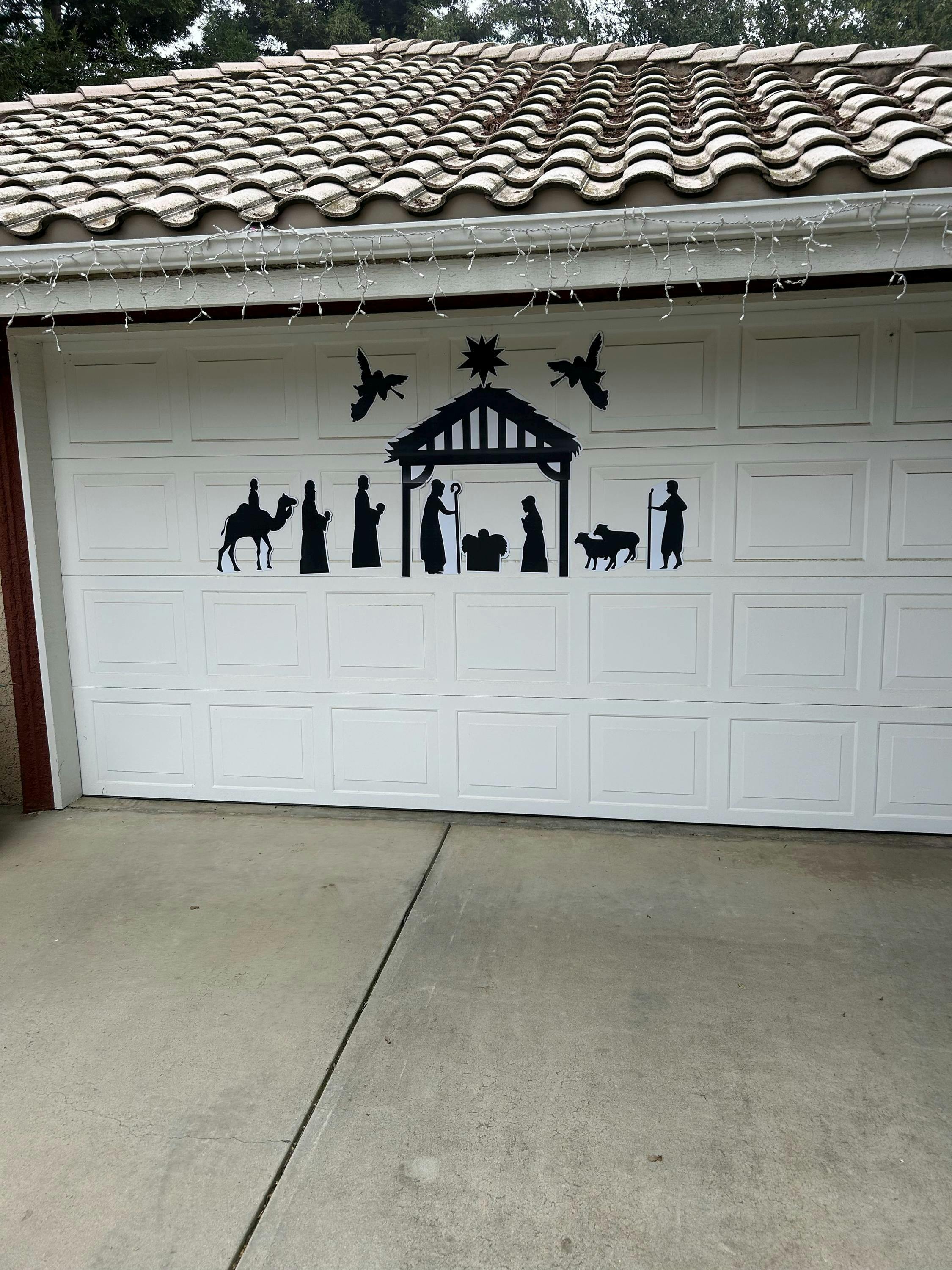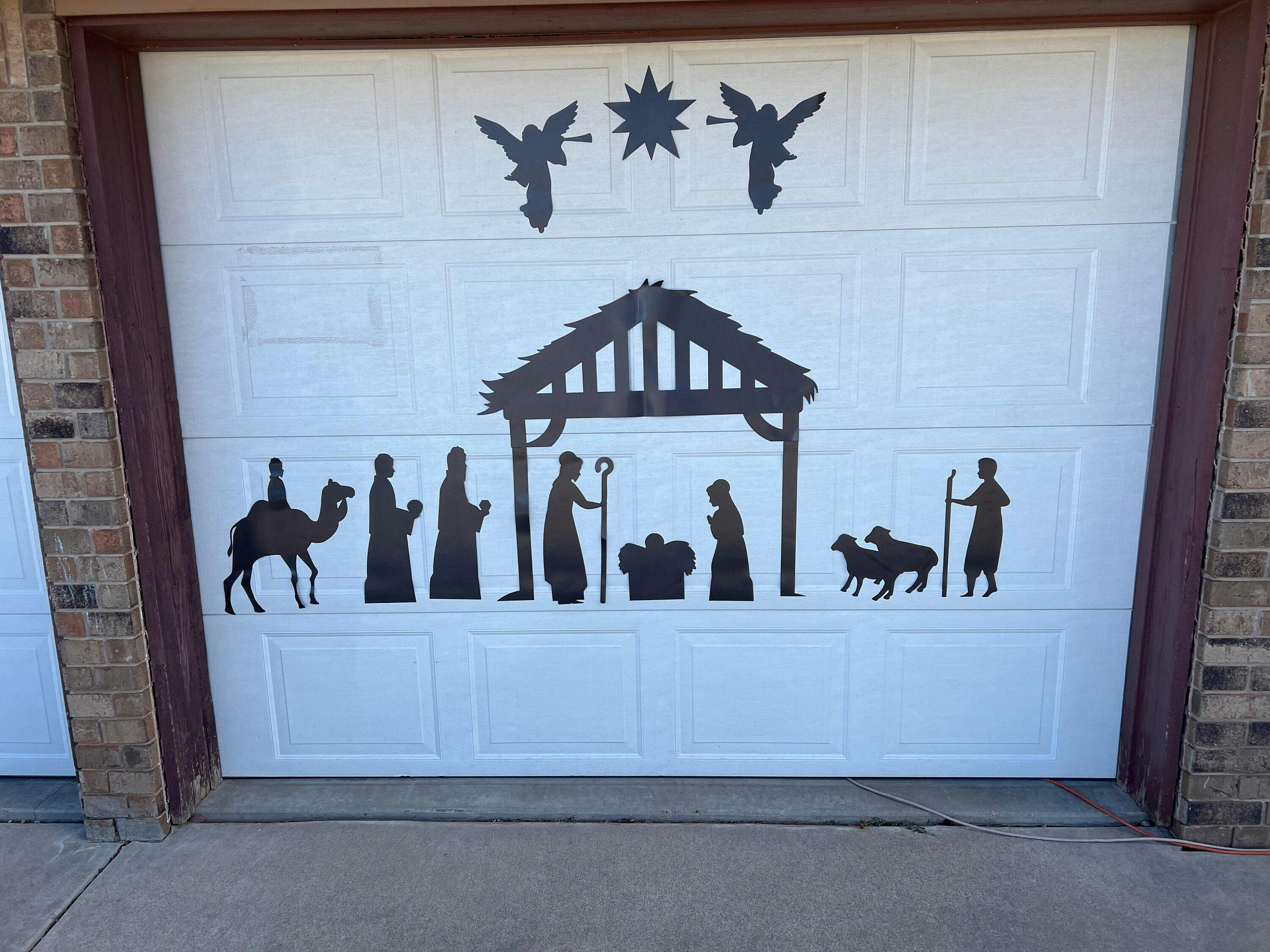 Celebrate the true meaning of Christmas with the VictoryStore Jumbo Nativity Magnet Set. This stunning nativity scene features a beautiful silhouette design that transforms your garage door into a heartwarming holiday display. Made from high-quality, outdoor-grade magnetic material, these durable magnets are 0.03 inches thick, waterproof, and built to withstand the elements. The largest piece—the roof and manger poles—measures an impressive 34 inches wide by 33 inches tall, creating a captivating centerpiece that captures the essence of the season. With easy setup and a strong magnetic hold, this nativity set is perfect for spreading holiday cheer while showcasing the message: "Jesus is the reason for the season."