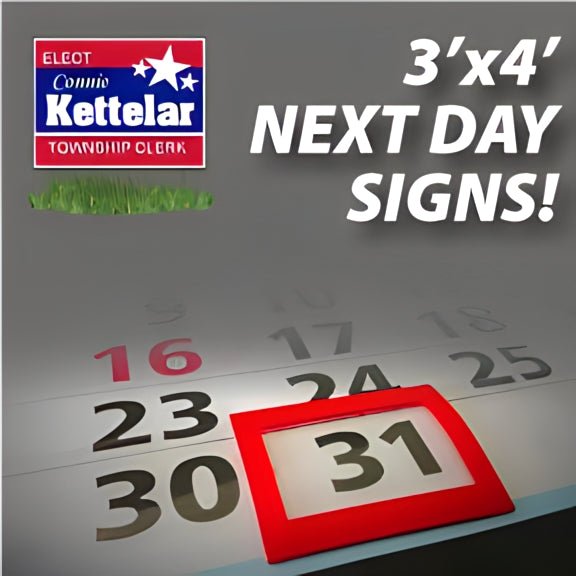 NEXT-DAY ORDERS: Approve your design by 5 PM CST, and we’ll ship your signs the next business day.