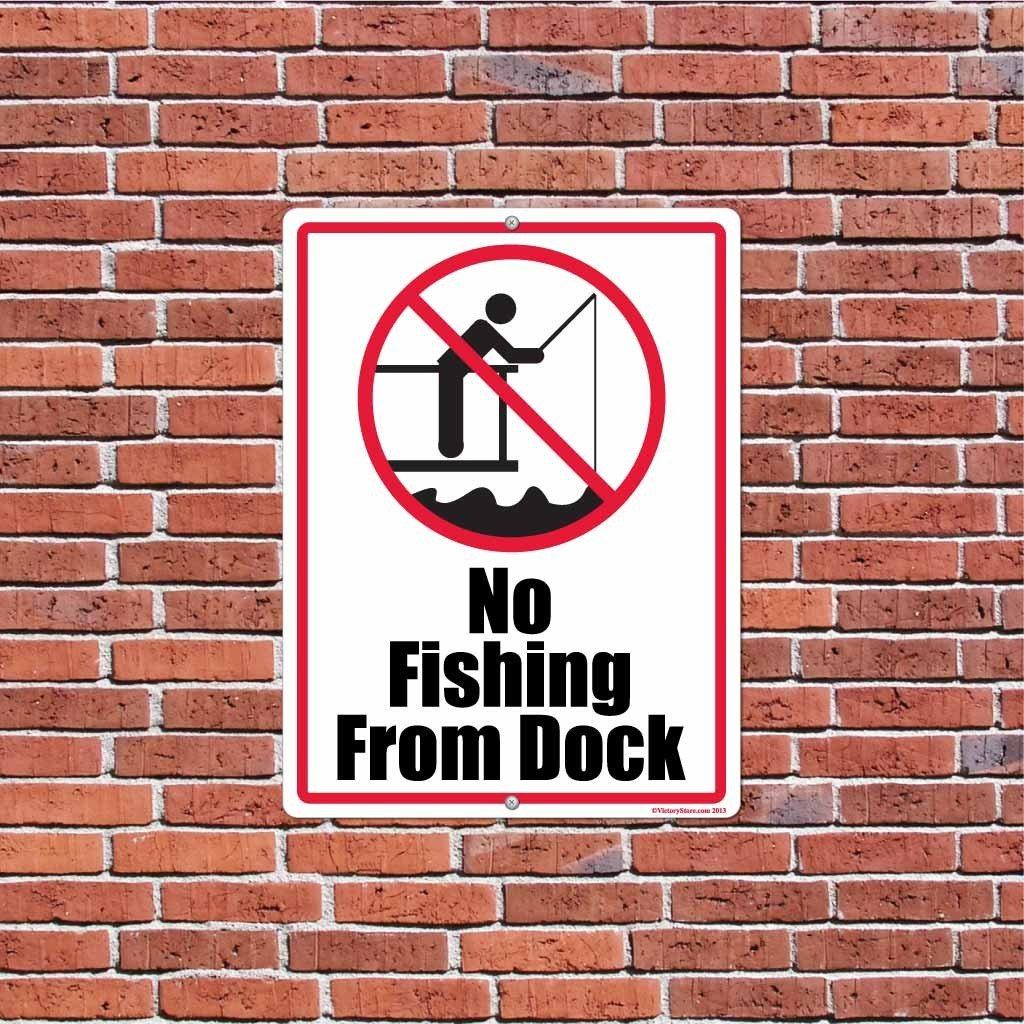 - This sign reads: "No Fishing From Dock". Sign measures 18 inches wide by 24 inches tall.