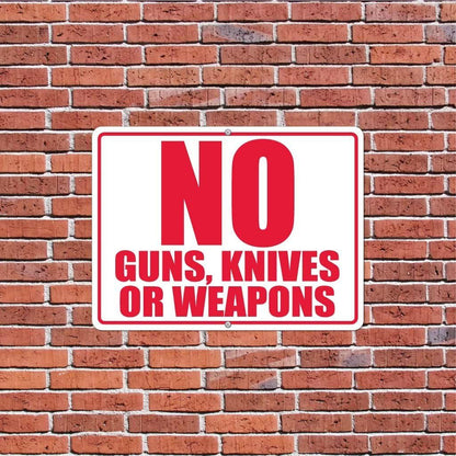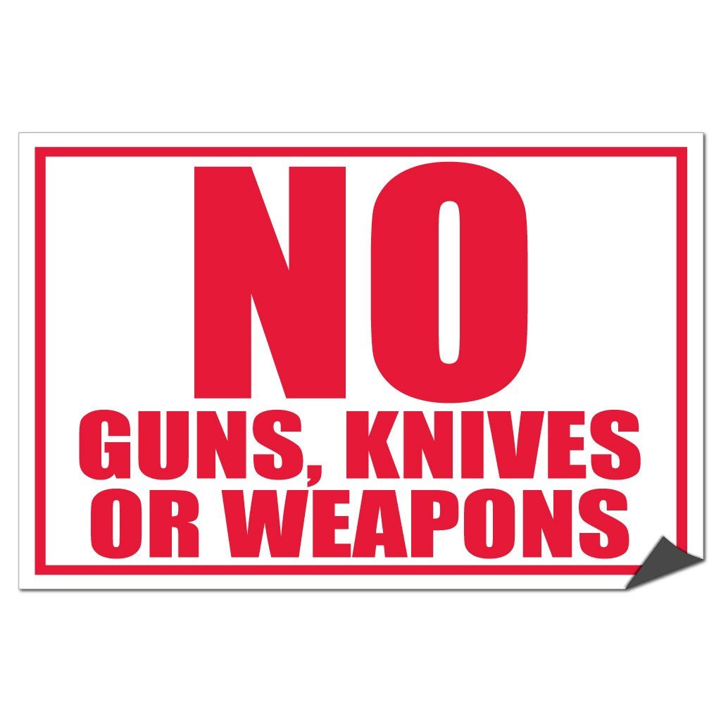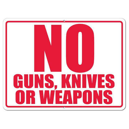 Get our "No Guns, Knives or Weapons - #1" design printed as a one sided sign or sticker.