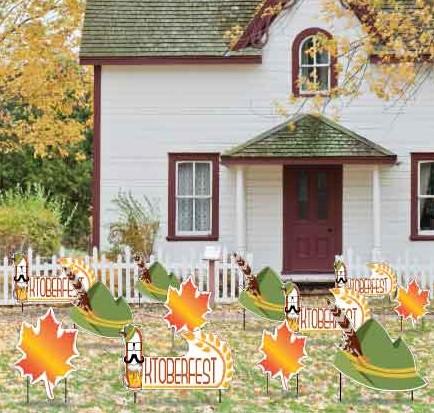 - Our Oktoberfest Decorations are the perfect way to spread the fun of fall. You will receive 4 "Oktoberfest" 25.5"x15" signs, 4 hats 22"x20" and 4 leaves 14.4"20".