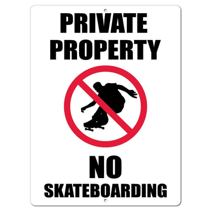 Get our "Private Property - No Skateboarding " design printed as a one sided sign or sticker.