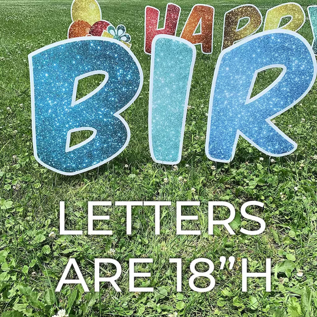 - 13 letters that spell out Happy Birthday with each letter measuring 18" tall.