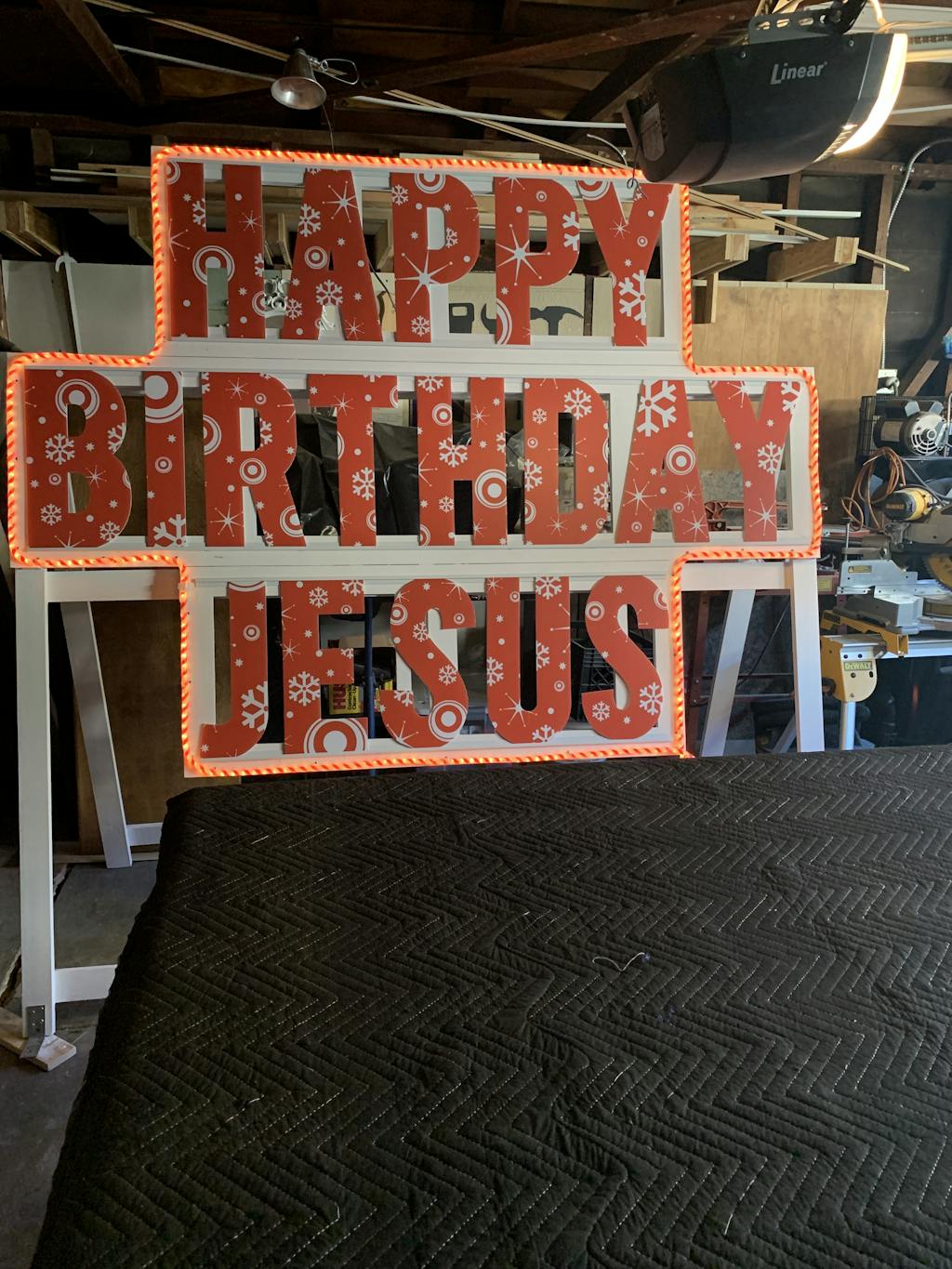 • Our Happy Birthday Jesus letters yard display comes with 18 letters that spell out 'Happy Birthday Jesus'.