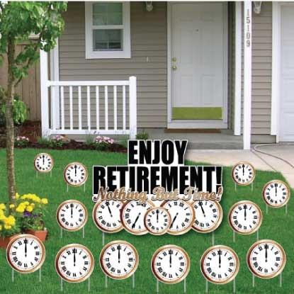 - Decorate someone's yard with this Retirement yard card while they are asleep, they'll wake up to a BIG surprise. Great as a gift or for decorating for a party.