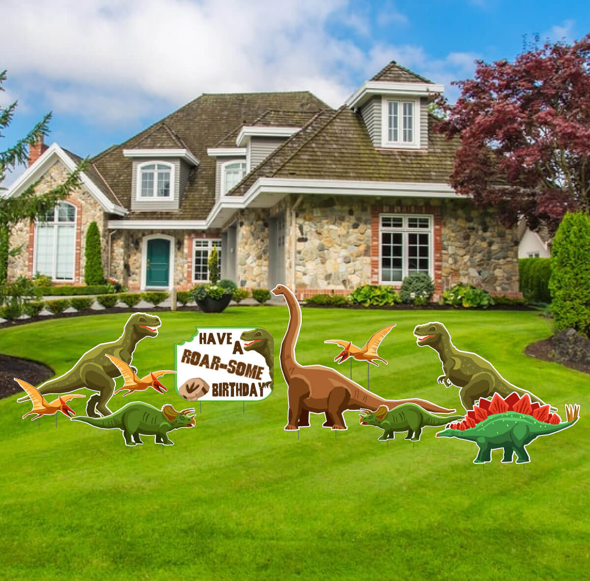 • 9 dinosaur signs & 1 Birthday message sign (18"x24")