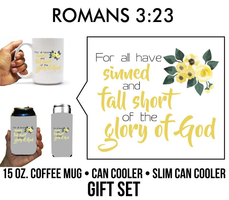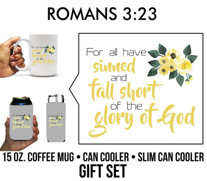 Romans 3:23 Religious Coffee Mug & Can Cooler Gift Pack