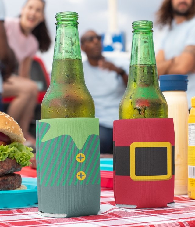 • Keep your drinks cold and your hand warm with our Santa & Elves Christmas Can Cooler set