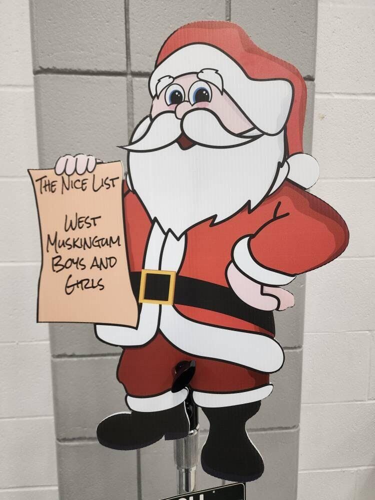 - OUTDOOR SIGN - "Santa's Nice List" Custom Names. Each Christmas yard sign is printed in full digital color on outdoor weatherproof corrugated plastic. The sign is printed on one side and measures approximately 16.5"x23.5". The sign come with 2 EZ stakes for posting. Sign printed on one side only.