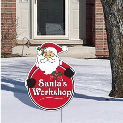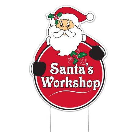 Santa's Workshop Christmas Lawn Sign | Pair of EZ Stakes Included