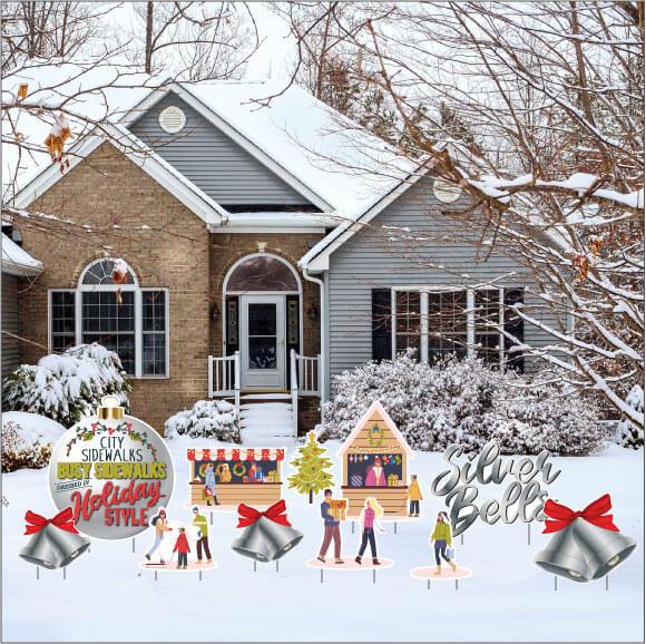 Get your neighborhood in the Holiday Spirit with our Silver Bells Christmas Yard Greeting