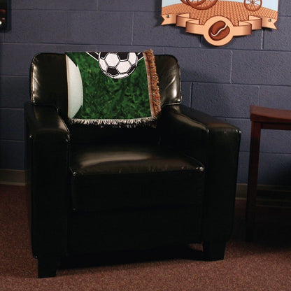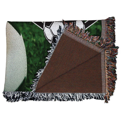 - This beautiful woven blanket comes with a soccer design on one side and brown woven fabric on the other.