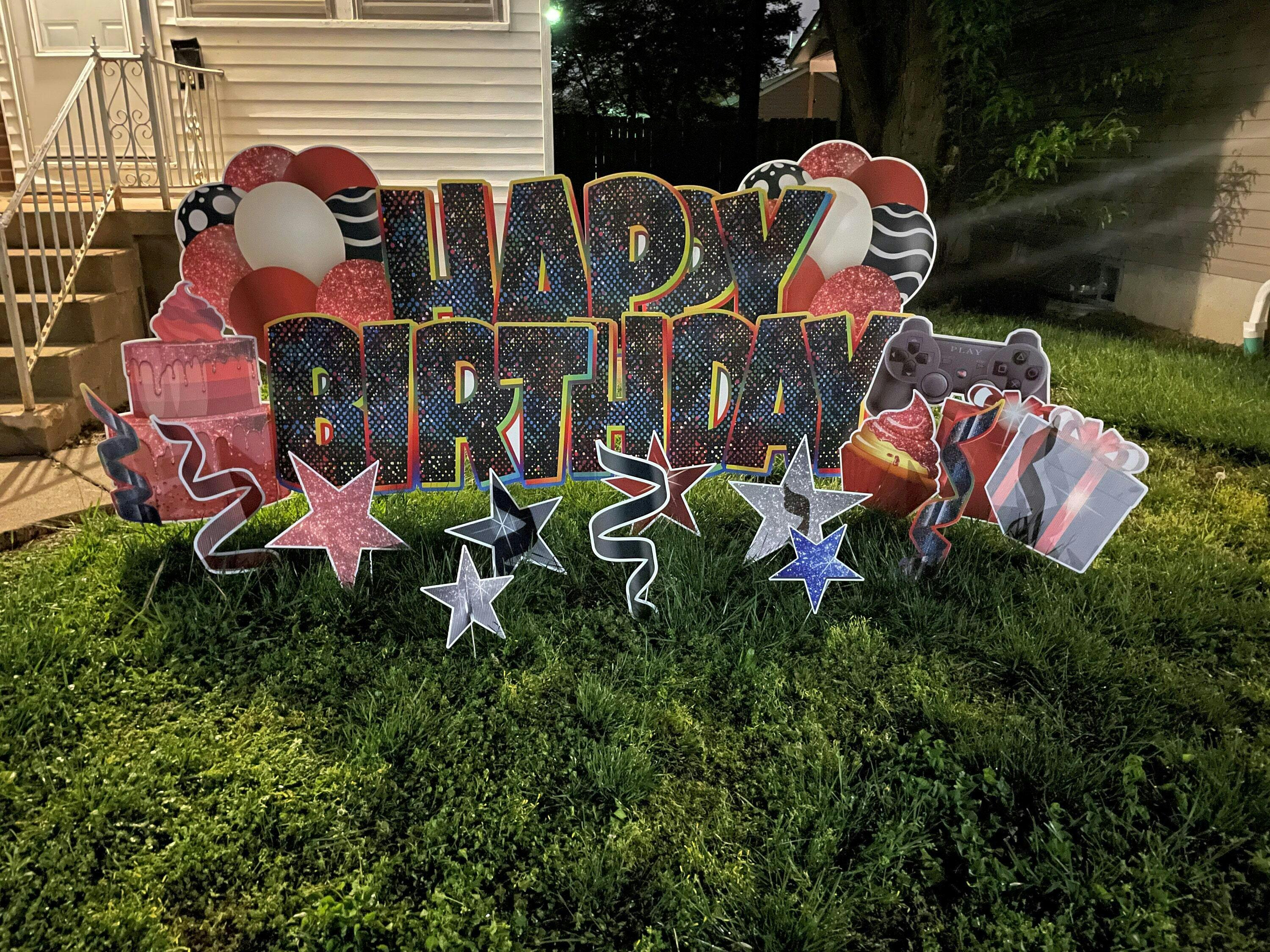 Add some flair to your yard card displays with our Sparkle Birthday Flair Yard Sign Accessory Set
