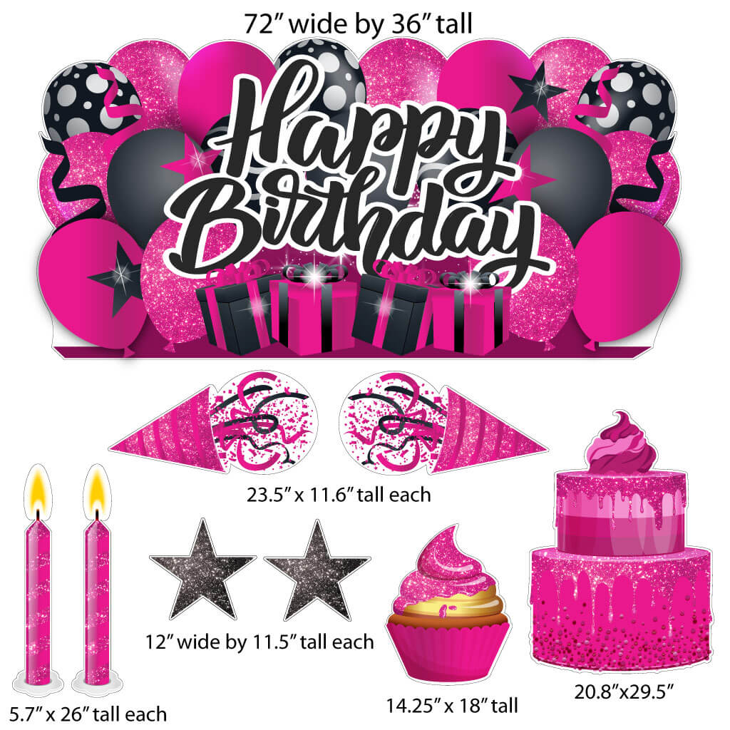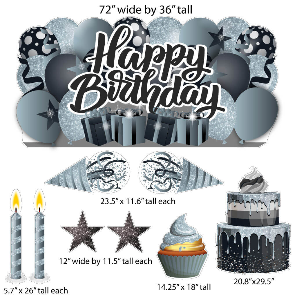 Sparkle Happy Birthday Oversized EZ Yard Card Sign Display - 9 pc set