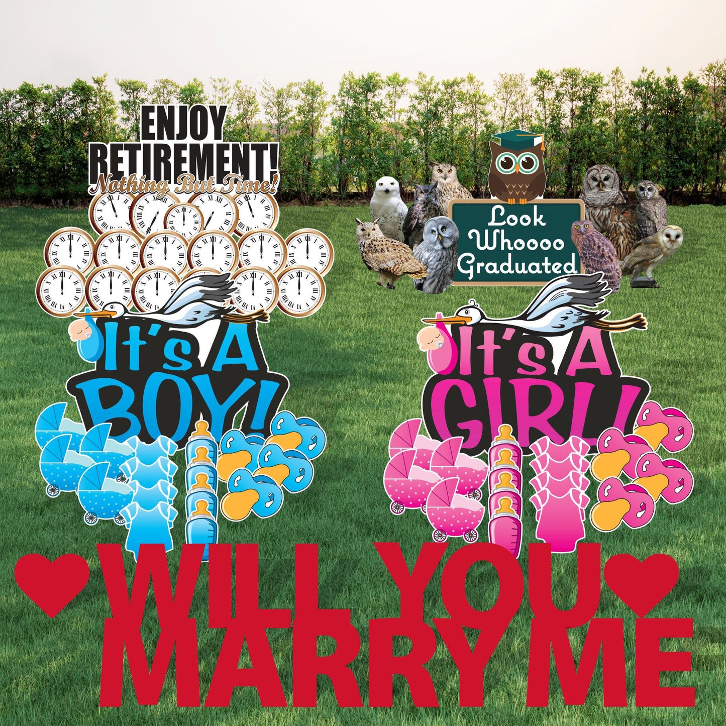 Be ready for those special events with our Special Events Yard Decoration Set! This set includes 5 yard greetings, complete with stakes for easy installation