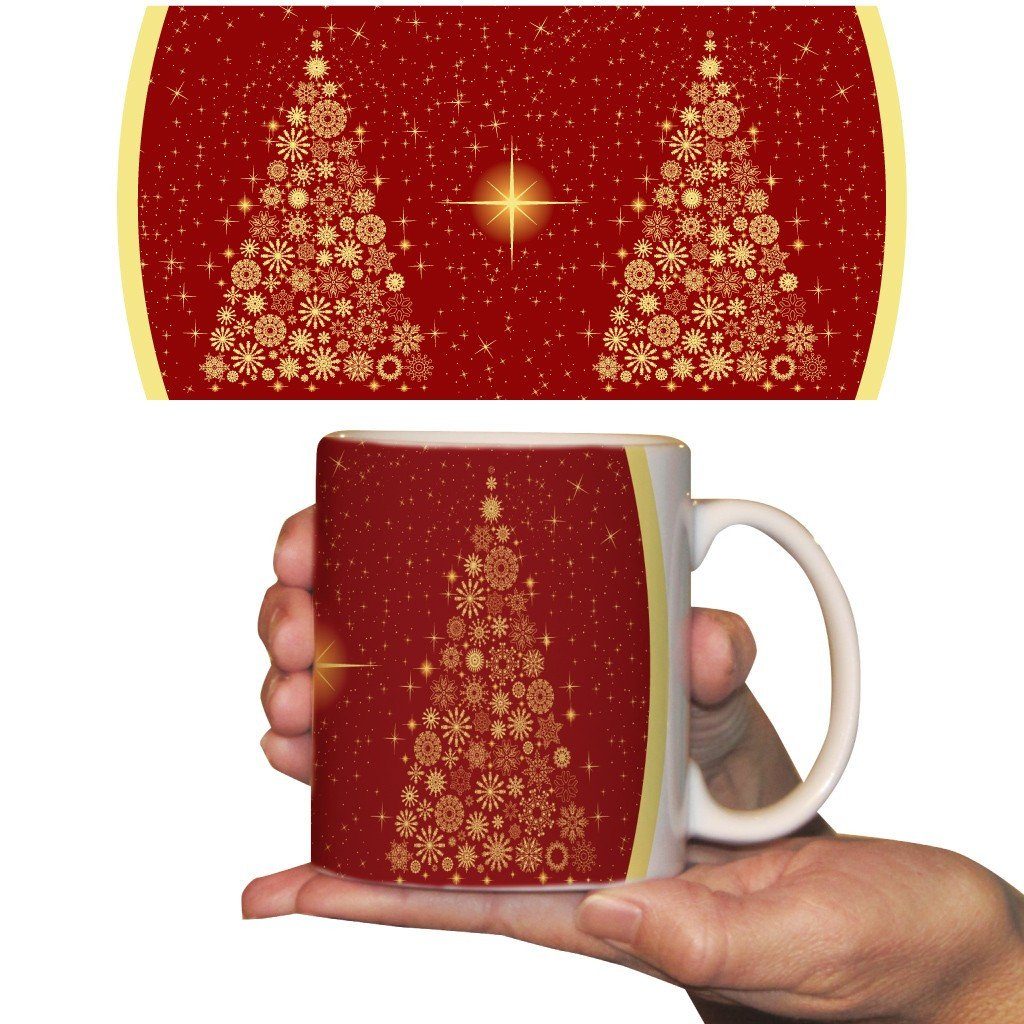 Star Tree with Red Background Christmas 15 Oz Coffee Mug
