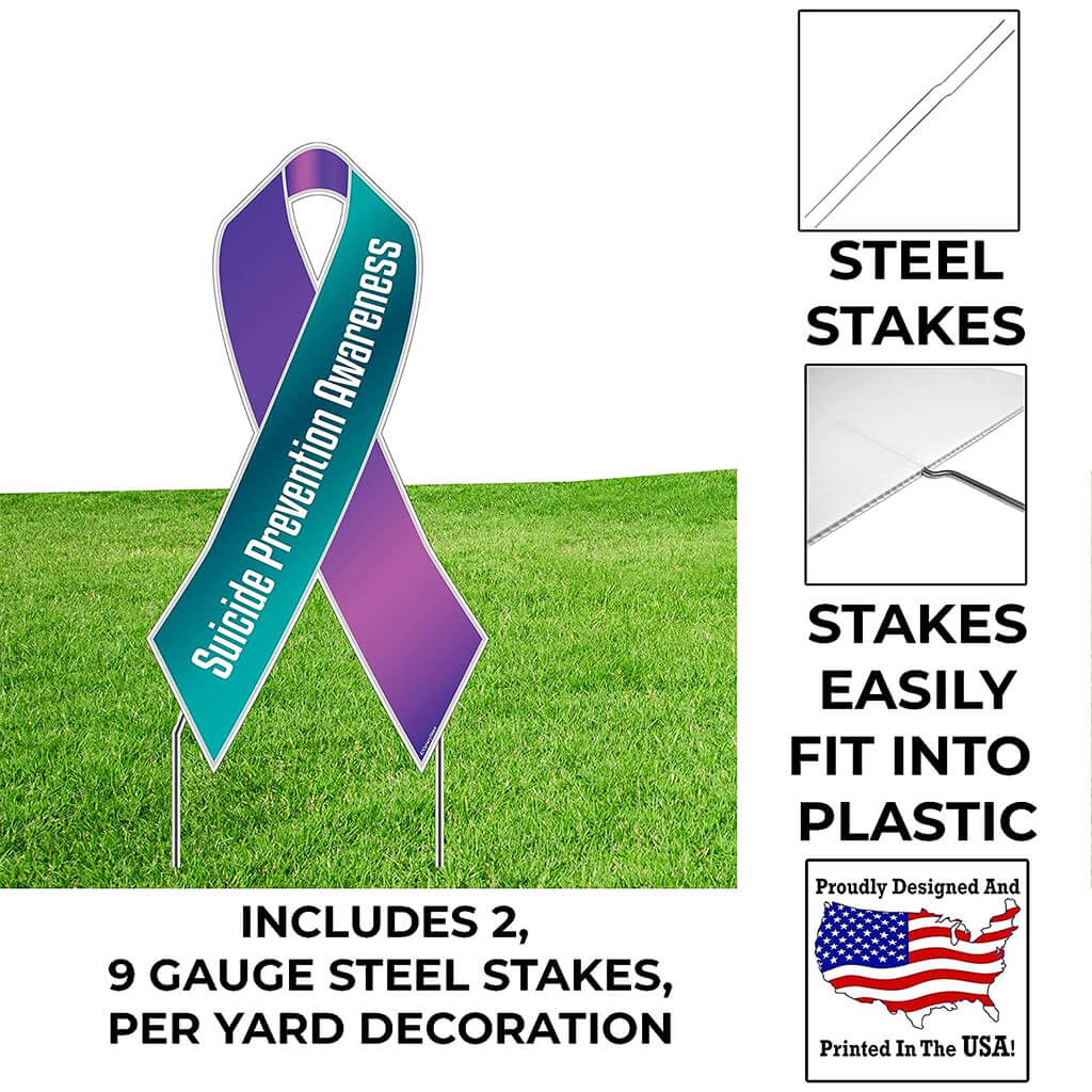 Suicide Prevention Awareness Ribbon Yard Sign, Teal and Purple with Stakes