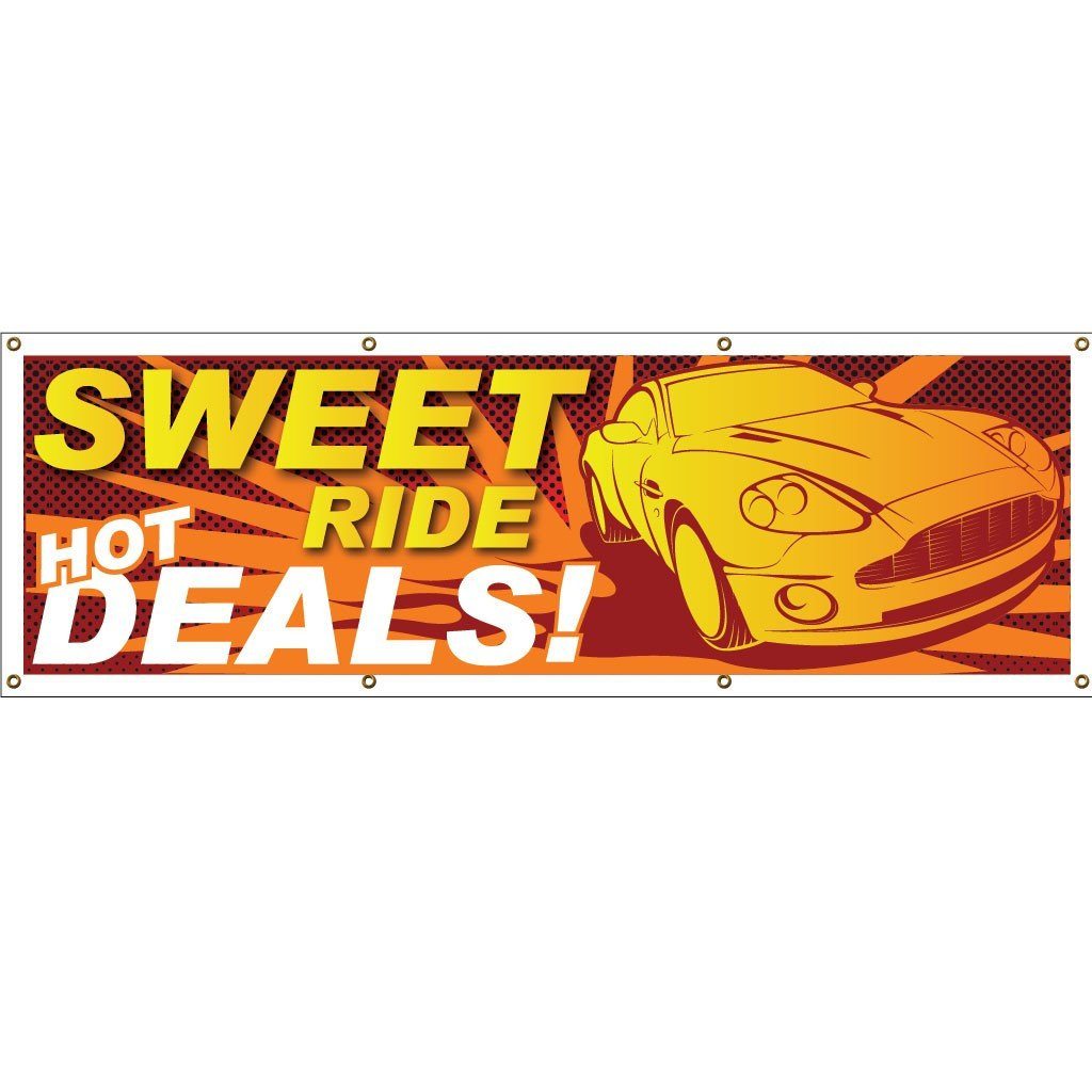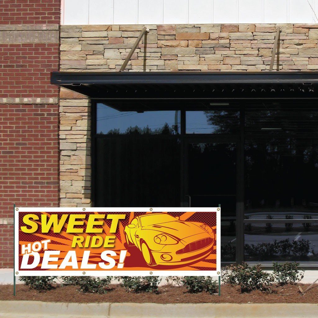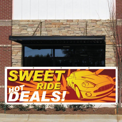 • 'Sweet Ride, Hot Deals' banner on your choice of 13 oz vinyl banner material or 15 oz heavy duty banner material