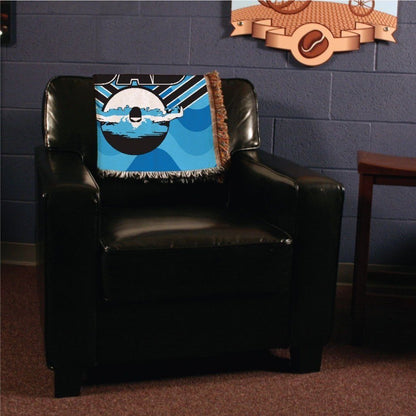 - This beautiful woven blanket comes with a swimming design on one side and brown woven fabric on the other.