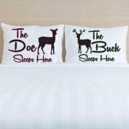 The Buck & The Doe Sleeps Here His and Hers Pillow Case Set