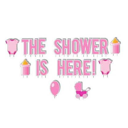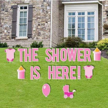 The Shower is Here Girl Baby Shower Yard Cards - 22 piece set