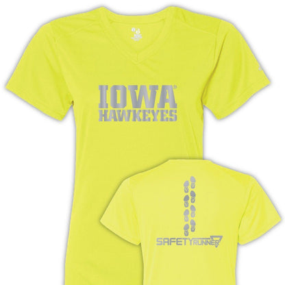 Perfect design for any Hawkeye fan! Be seen while running, walking or biking with a SafetyRunner Womens Reflective V-Neck Performance Shirt