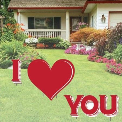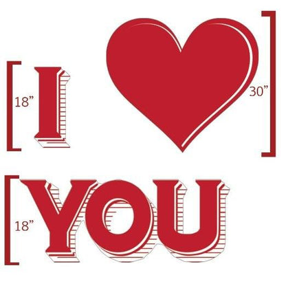 - Each word measures approx. 18 inches tall and the heart is 30 inches tall;. Comes with 6 of our short stakes for displaying.