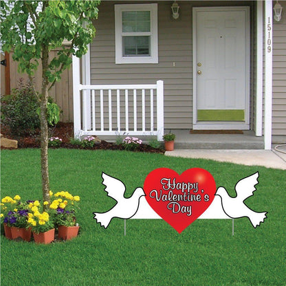 This yard sign of two doves holding a heart that says "Happy Valentine's Day" is great for any Valentine's Day decorations.