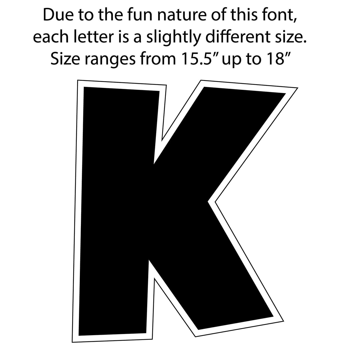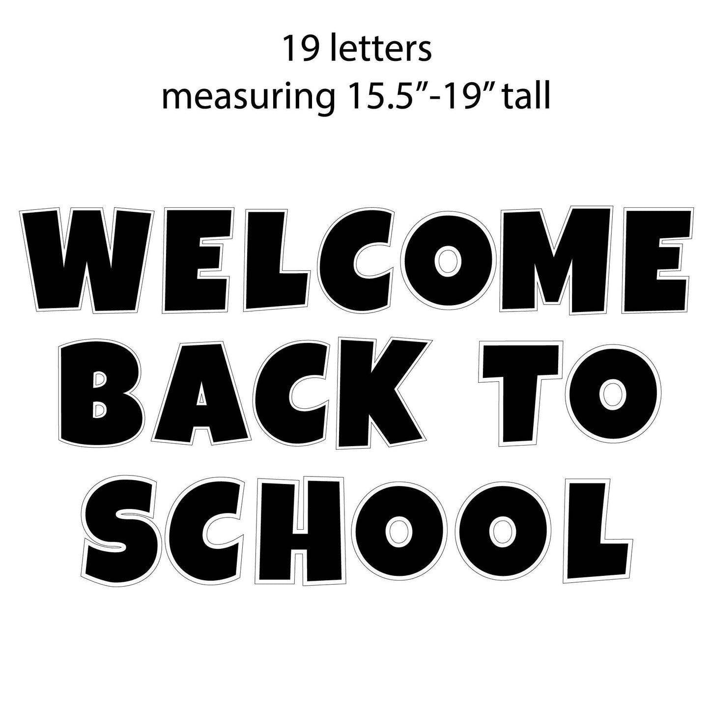 • Due to the fun nature of the font used for 'WELCOME BACK TO SCHOOL', each letter varies in size from 15.5" tall to 18" tall.