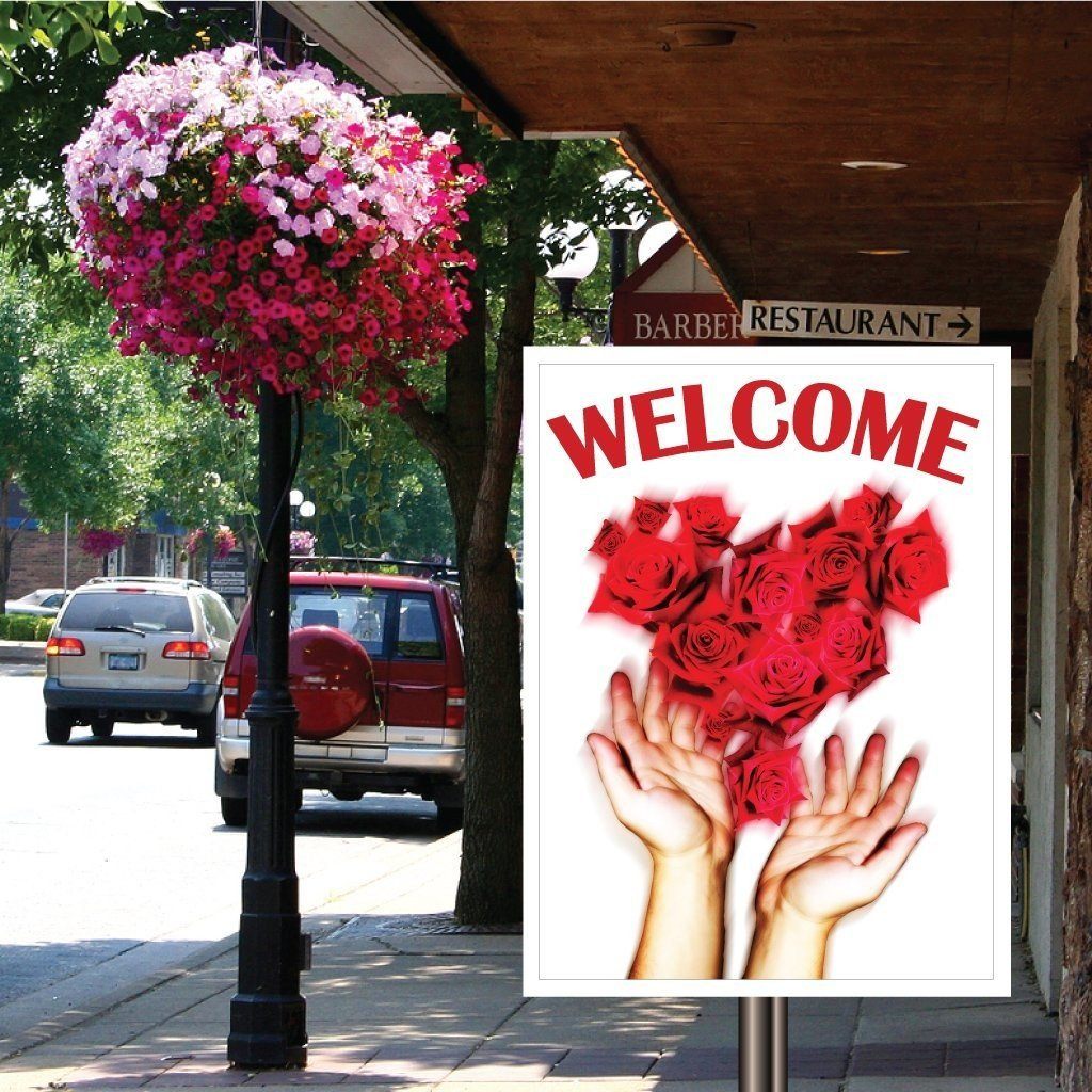 - Welcome Wedding Sign is corrugated plastic and measures 18" x 24".