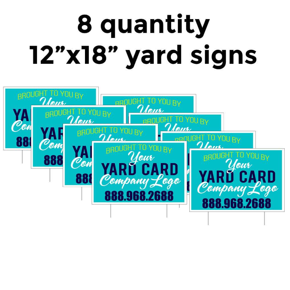 • Set of 8 yard signs, each measure 12"x18" One-Sided Imprint