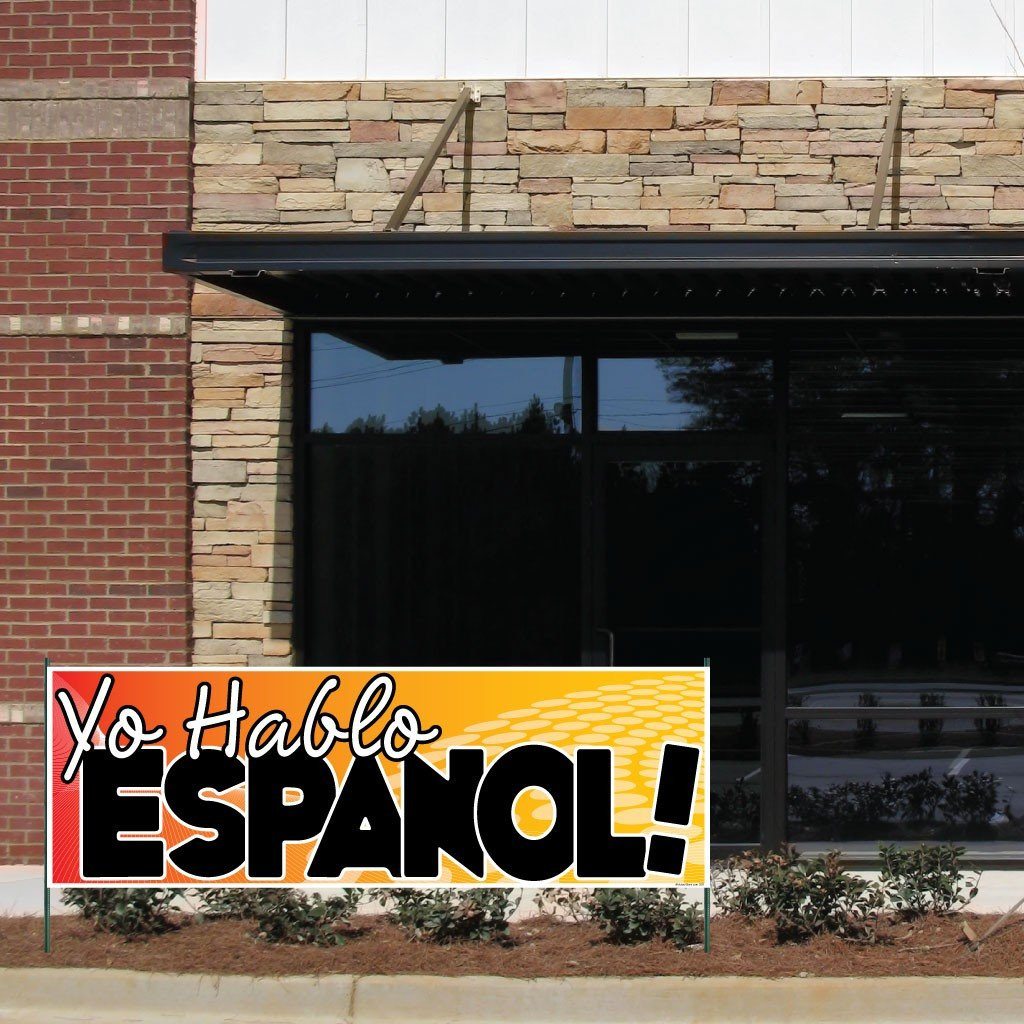 • Yo Hablo Espanol! banner on your choice of 13 oz vinyl banner material or 15 oz heavy duty banner material