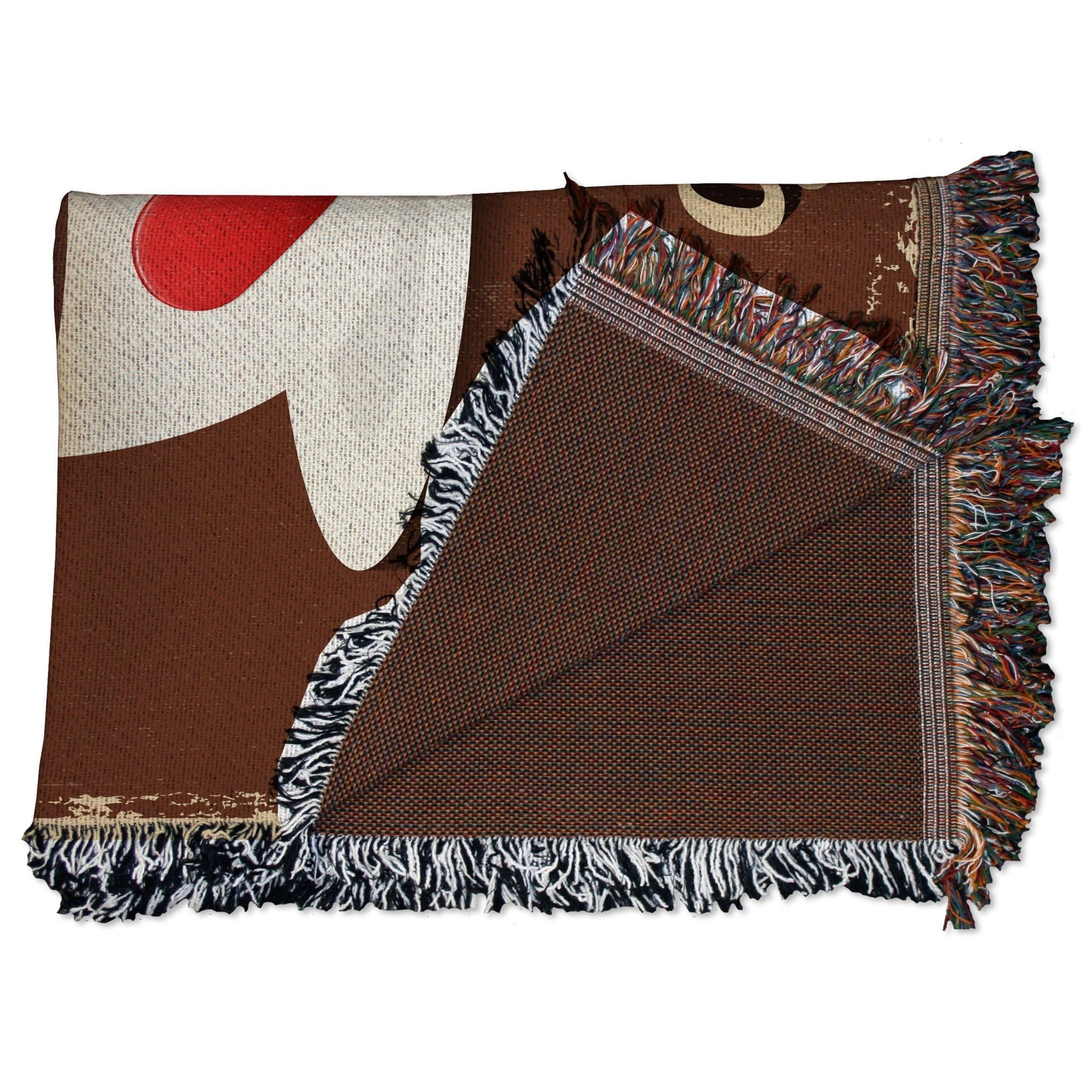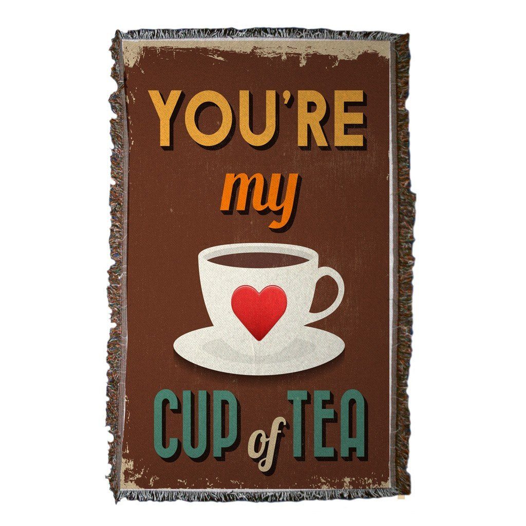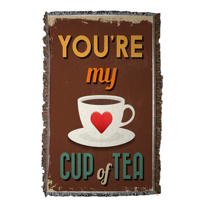 - You're my cup of tea woven blanket comes with a design on one side and brown woven fabric on the other.